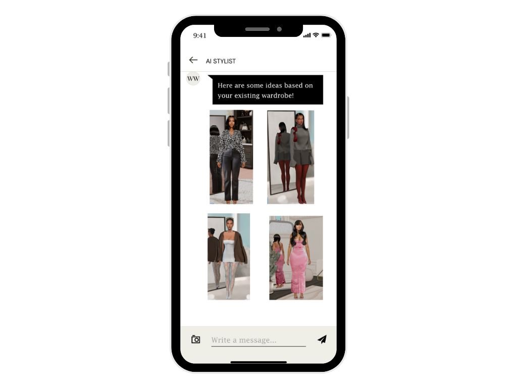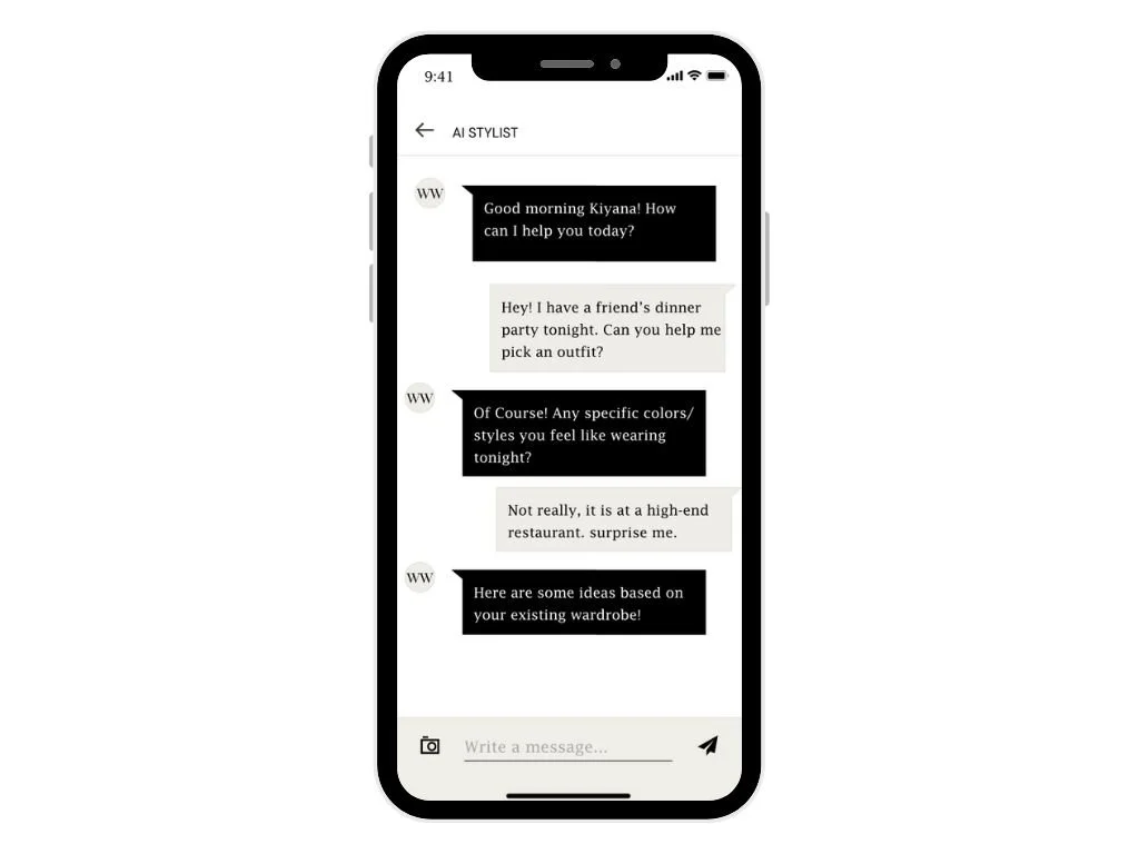 Integrated an AI chat feature (concept) to suggest outfits based on users’ preferences and closet history